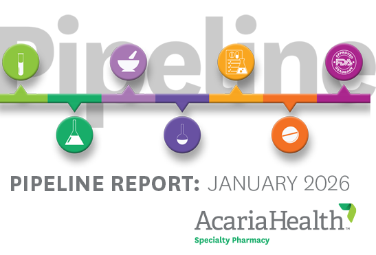 Our quarterly publication is developed by our Clinical Pharmacy Drug Information team to provide additional drug pipeline information and insights to help health care leaders prepare for shifts in prescription drug management. Learn more by accessing the complete AcariaHealth January 2026 Pipeline Report (PDF).